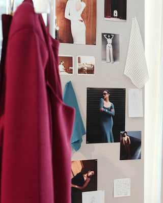 Elisa Dahan brought her vision for Dodiee to life through mood boards that adorned the space. Featuring heartfelt touches like photos of her mother, iconic 70s imagery, and fabric samples, they offered a glimpse into the inspiration behind the new designs.