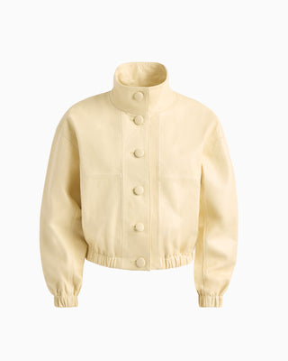 KATE leather bomber in butter yellow